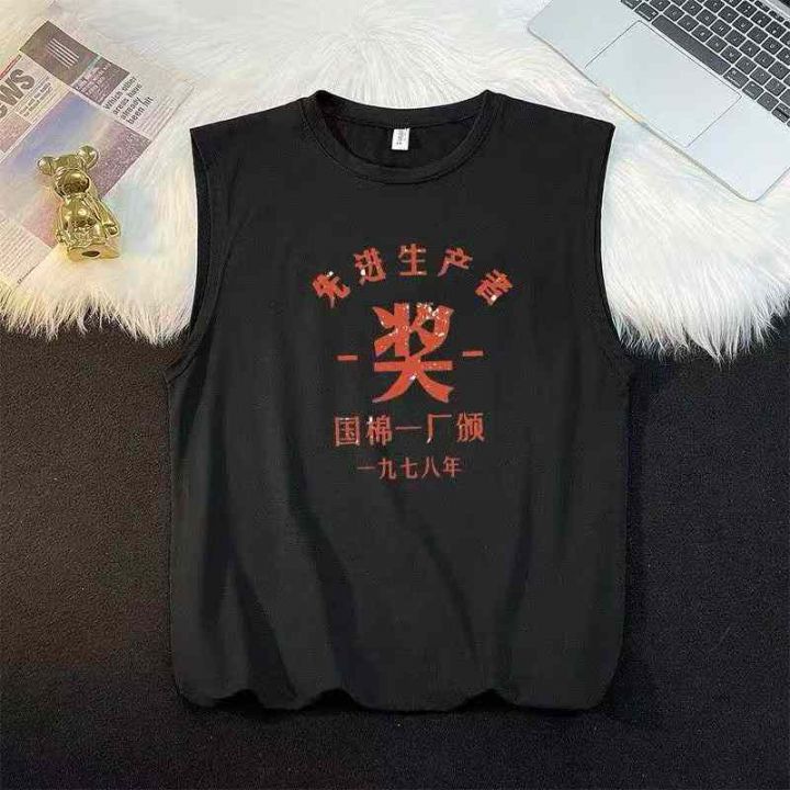 852件,国潮复古怀旧七八十年代积极分子坎肩无袖背心t恤男夏季宽松上衣,独...