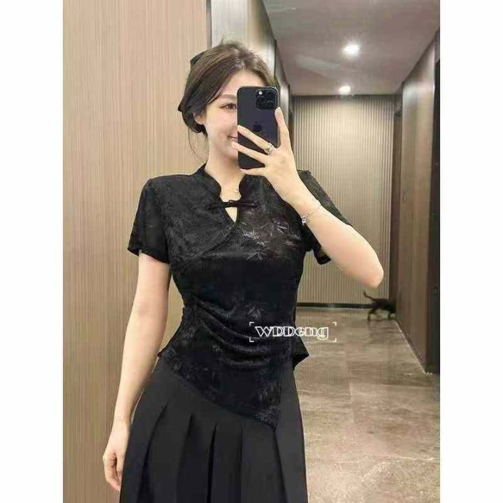 5.8 清 78 件 新中式国风盘扣刺绣短袖T恤女夏季2025新款复古纯欲辣妹修身显...