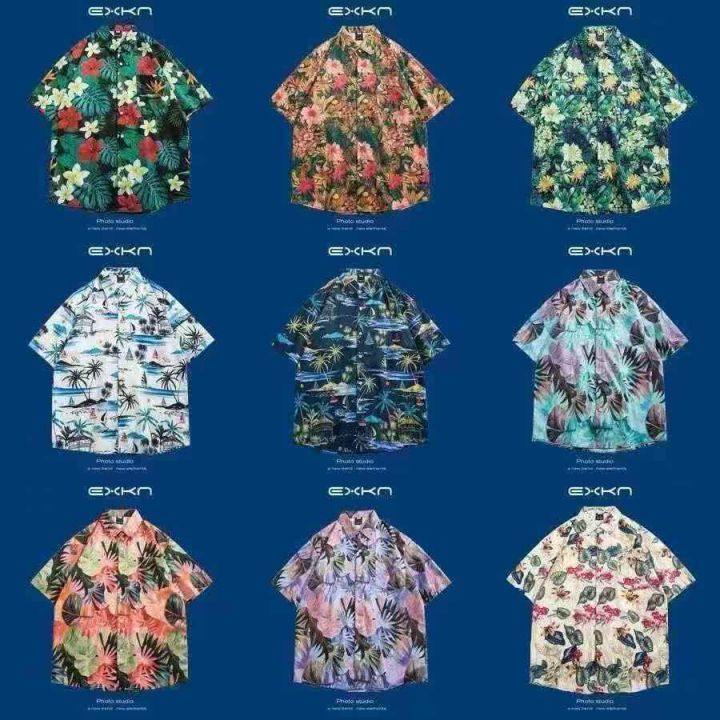 欧洲站夏季新款男士衬衫夏日风情时尚短袖免熨烫翻领衬衣,独立拉链包装,码...