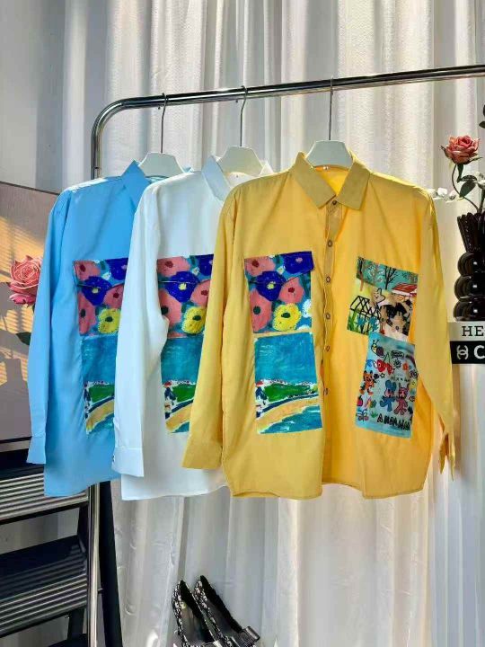 风油画可爱别致花朵小众设计感工装款长袖衬衫上衣 独立包装 码数1-4码 数量...
