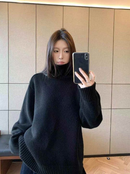 秋冬新款净版宽松简约高领慵懒风男女同款大版套头毛衣,独立包装带吊牌,均...