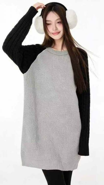 秋冬新款撞色插肩袖宽松慵懒风中长款毛衣,独立包装,面料软糯厚实,码数S-...