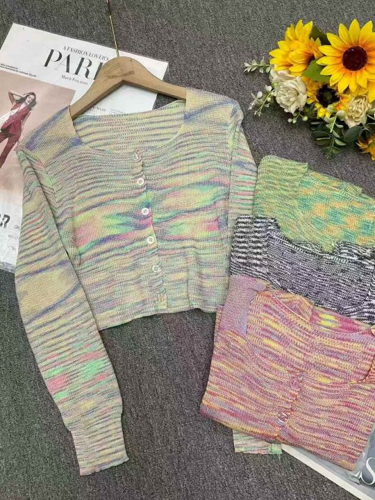 春秋新款网红复古撞色彩虹条纹针织毛衣开衫,独立包装,均码面料柔软舒适弹...