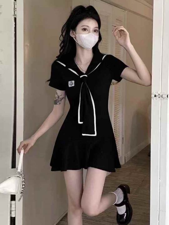 纯欲风性感V领连衣裙女秋冬季甜辣妹设计感内搭网纱修身包臀短裙,单款单色...