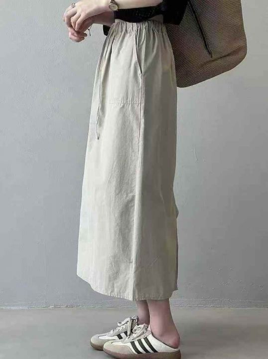 7.3元清韩系新款复古高腰双口袋工装半身裙绑带松紧宽松A字裙休闲半身裙,高...