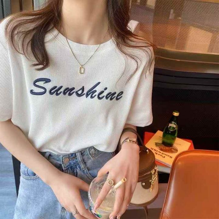 60件,短袖t恤女夏季,新款设计感小众显瘦半袖华夫格别致上衣体恤,独立包...