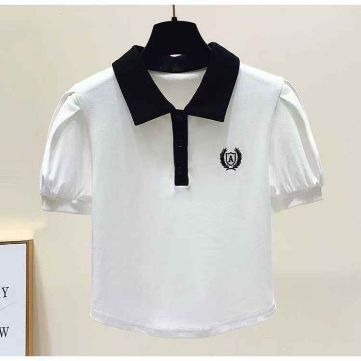 323件,夏季纯棉polo领女t恤短袖宽松翻领学院新款撞色薄小清新上衣,独立包...