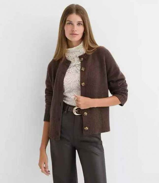 Mng 原单圆领开衫毛衣黑色多,1600件。 货号:2978