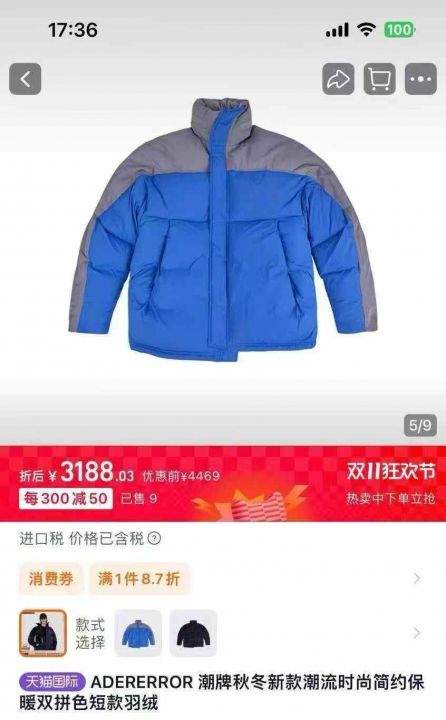 潮牌Ader Error双拼色复古廓形羽绒服A1~A3尺码,三标齐全独立原包装,实拍...