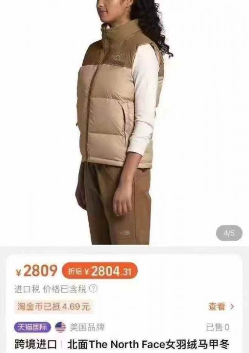 潮牌北面羽绒马甲,3色,300件。 货号:2978