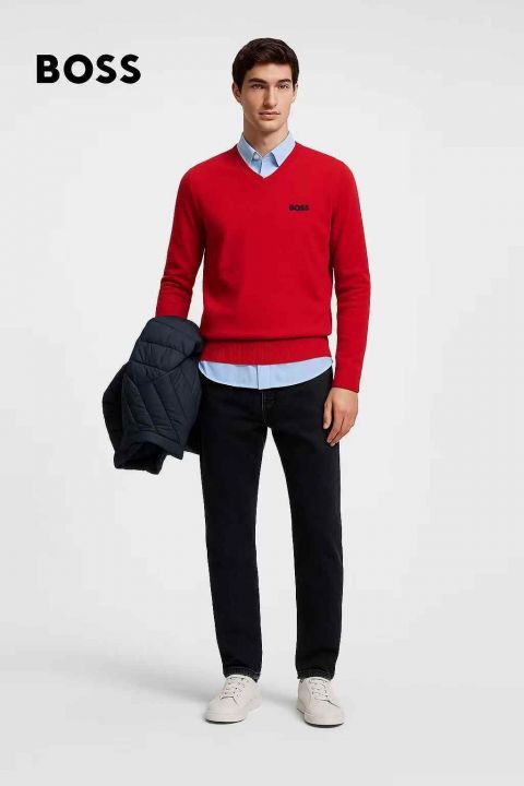 BOSS博斯V领针织毛衣S-3XL码,纯羊毛,扫码500件,5个色[庆祝]。 货...