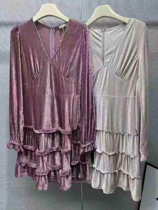16清150条,灯笼长袖低胸深V领收腰连衣裙ins欧美网红同款裙子,春季新款柔...