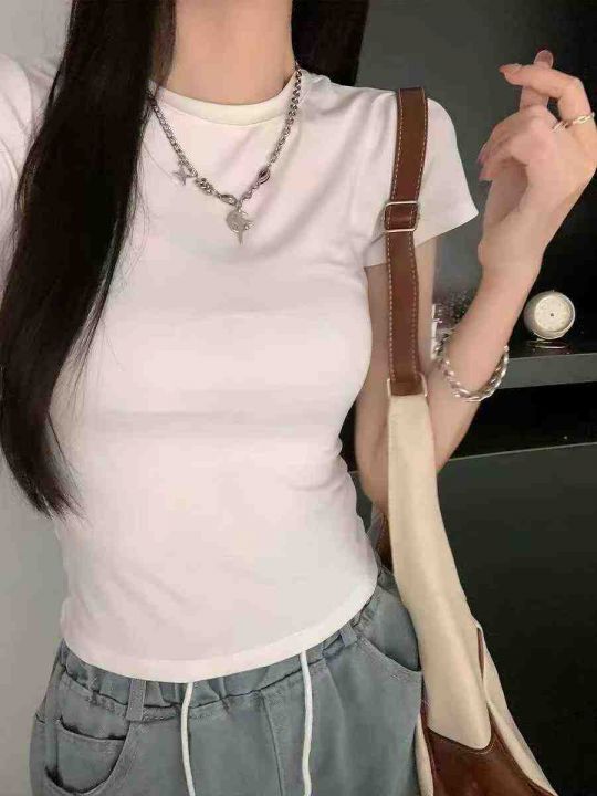 ☕️辣妹纯棉T恤圆领正肩短袖t恤女夏短款修身纯色显瘦上衣743件全清7.8元 ...