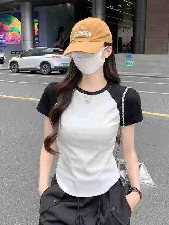 ☕️纯棉辣妹T恤独特别致甜辣妹多巴胺穿搭上衣设计感修身插肩短袖t恤782件...