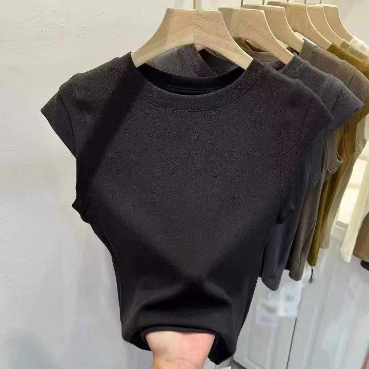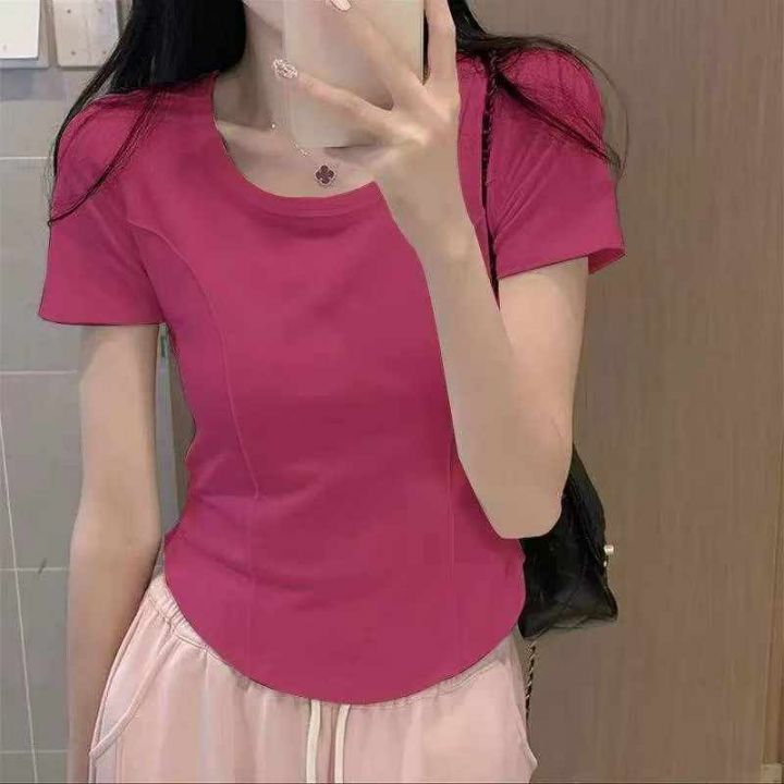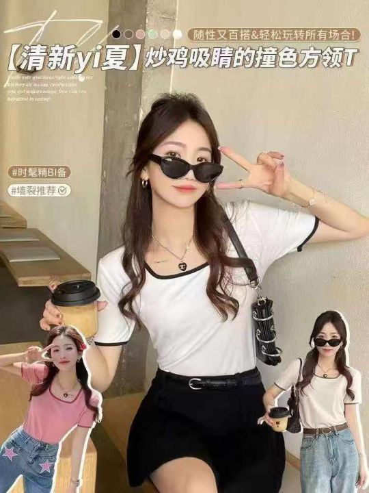 马蹄领 正肩黑色短袖t恤女12.550件起批 夏季2026 新款多巴胺穿搭宽松显瘦法...