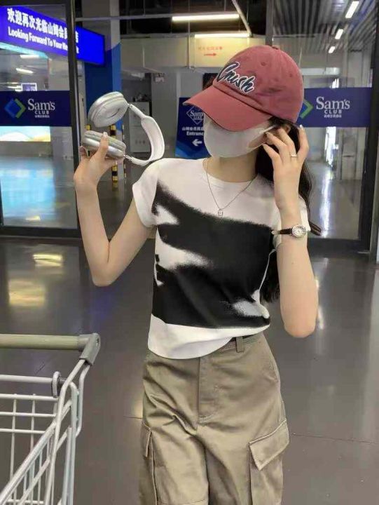 ☕️美式复古辣妹纯欲夏季修身方领辣妹蝴蝶印花纯棉短袖T恤500件全清8.8元 ...