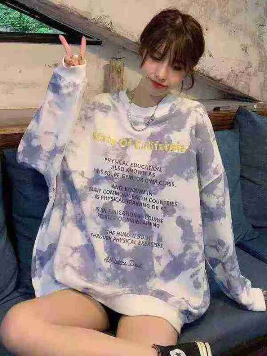 全清4.8元天猫在售款180件左右高品质春秋男女款bf宽松大版慵懒风扎染圆领卫...