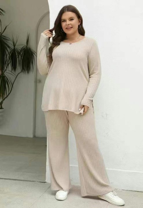 全清9.9亚马逊跨境外贸Winter ladies fashion two-piece set/纯色休闲修身...