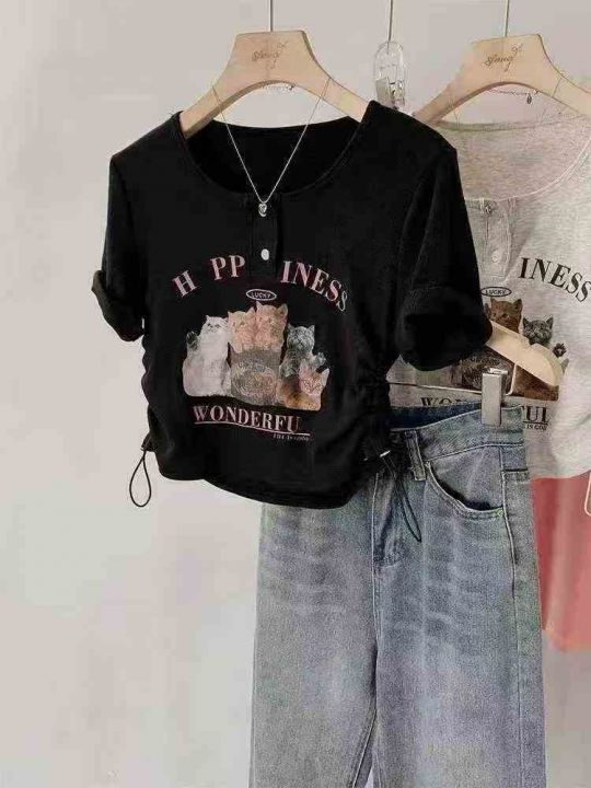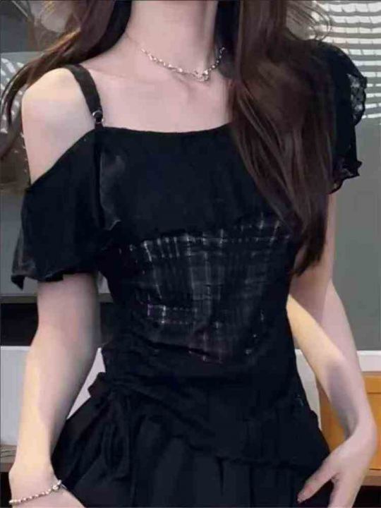 ☕️正肩款甜辣妹纯欲短款上衣女t恤小众设计感显瘦辣妹短袖T恤1463件全清8....