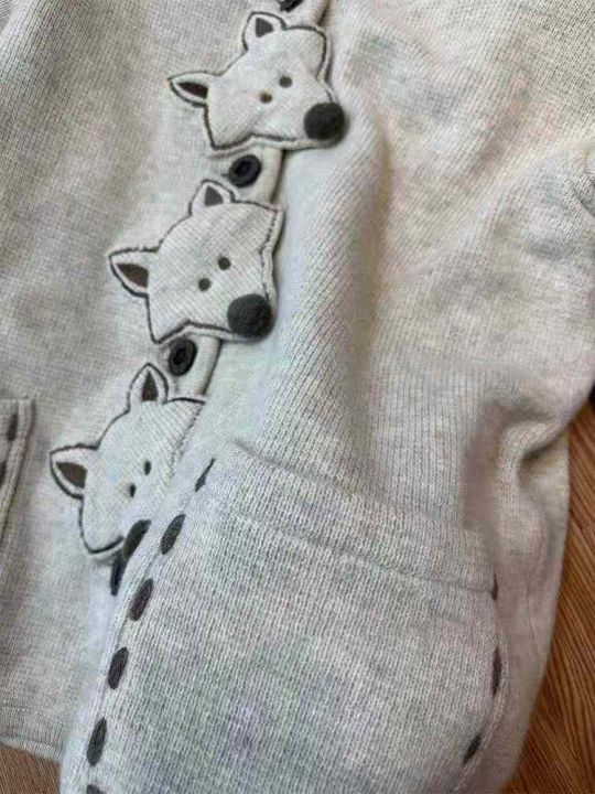 ☕️加厚毛衣开衫外套日系复古小狐狸V领长袖针织开衫女秋冬新款慵懒风宽松...