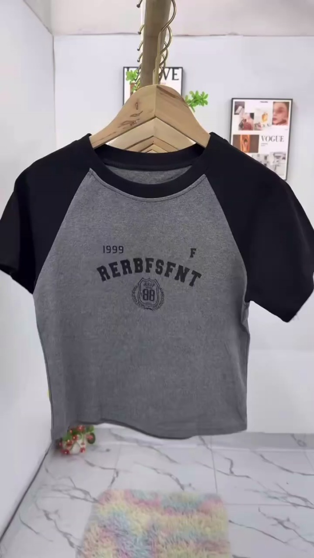 4.9清1230件夏季超好看辣妹撞色拼接字母长袖短袖t恤女春秋修身显瘦休闲百搭...