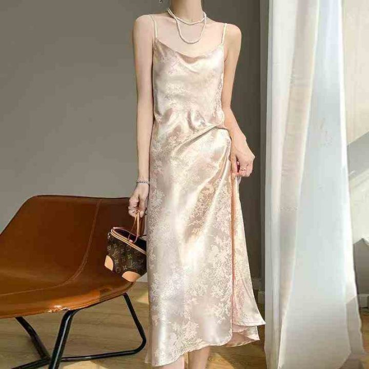 7.8分货➕1高级感气质提花连衣裙女夏季中长款法式浪漫吊带裙子,码数S-L,...