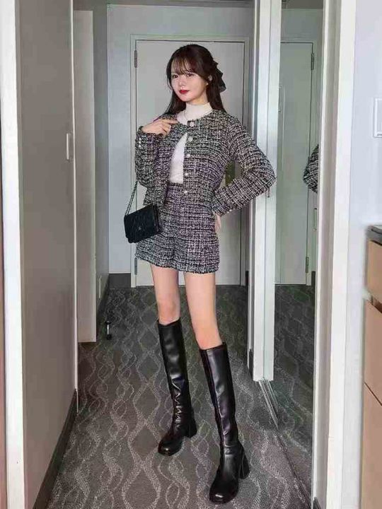 18.8清170套女装小香风外套短裤 两件套 复古圆领长袖格纹小香风粗花呢外套...