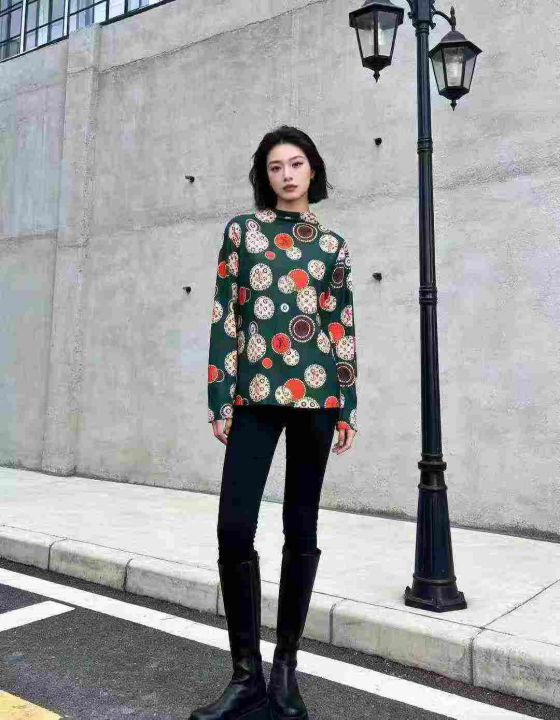 1000 件[红包]半高领印花长袖保暖打底衫,时尚减龄洋气百搭,整款 2 色,独...