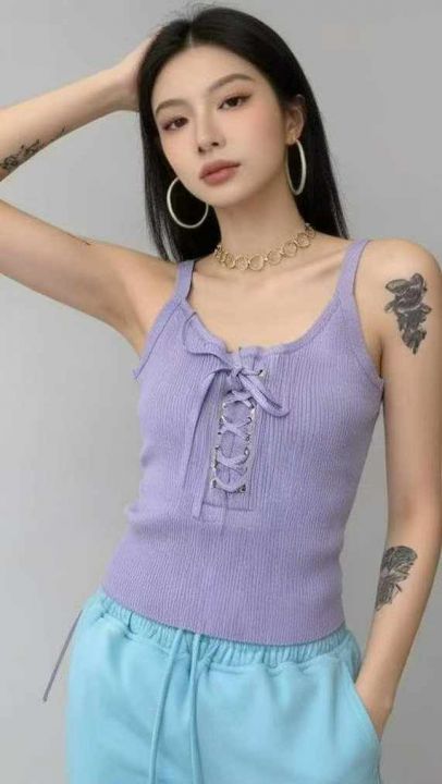夏季新款纯欲性感设计感绑绳设计款针织吊带背心,独立包装,均码面料柔软舒...