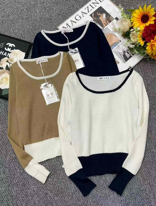 品牌原单撞色弹力修身显瘦针织套头毛衣,独立包装带吊牌,均码面料软糯舒适...