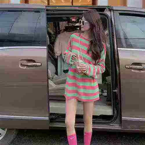 5.9元清秋季新款宽松长款条纹针织衫,数量2980件,单款5色,均码宽松版型,...