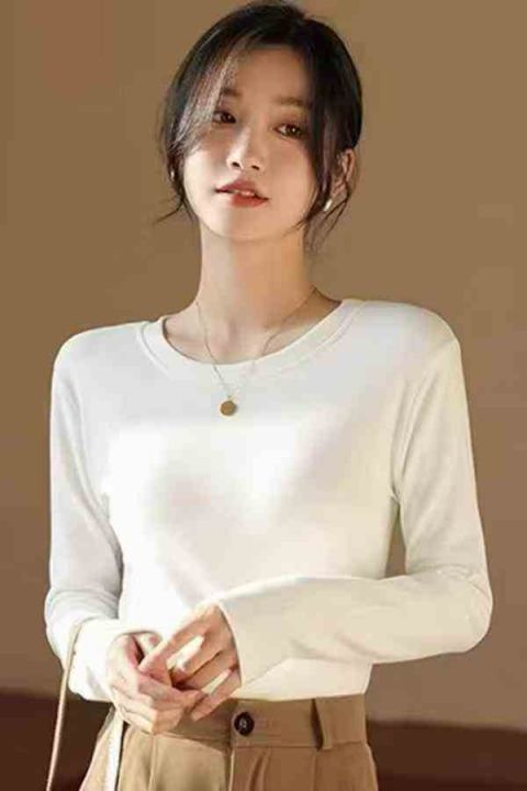 1200件韩系早秋新款宽松V领显瘦内搭打底衫上衣,含棉单款多色高弹力,尺码S...