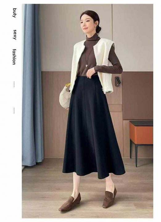 秋冬新款复古时髦优雅赫本气质高腰中长款A字伞裙毛呢半身裙,独立包装,码...