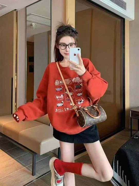 模特图☕️韩系趣味加绒圆领卫衣女新款套头慵懒风高级感超好看上衣8000件全...