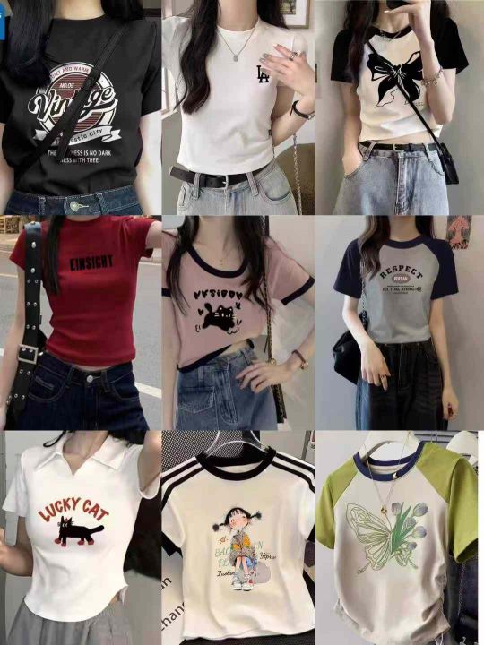 ☕️系列辣妹T杂款短袖T恤 高弹力5000件全清7.8元 分货8.8元 码数S到XXL,...