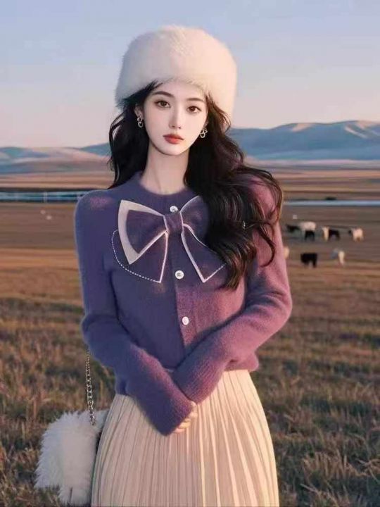 全清16.8,开衫单排扣胸前蝴蝶结高级感针织上衣女2025秋季新款厚...
