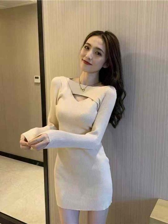 480条轻奢红色针织连衣裙女秋冬设计感别致洋气收腰打底裙,单款单色,码数S...