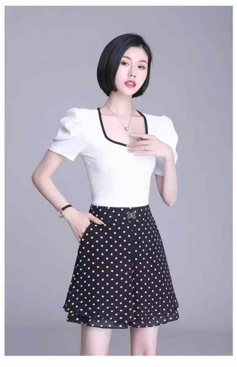 上新全清:2.9一件高腰气质百搭雪纺A字垂感波点裙裤,[爱心]400件左右,码...