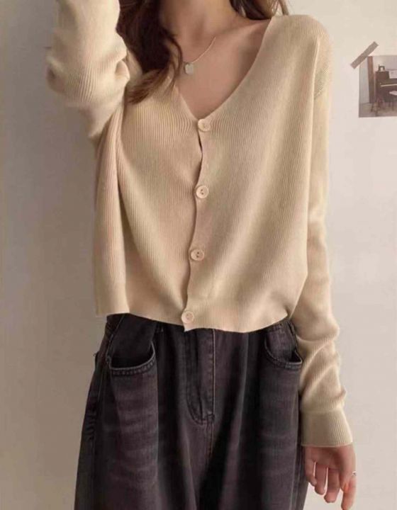 欧美针织V领扭结长袖短款上衣,独立包装,均码,90件左右,全清6.8...