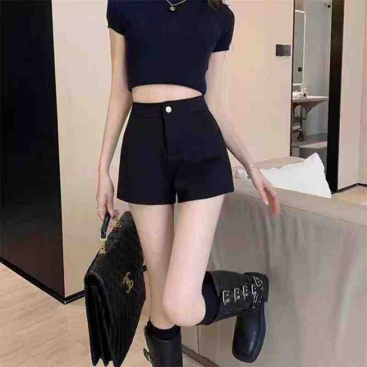 ☕️高弹力罗马修身黑色短裤春秋冬季女新款高腰打底a字外穿小个子西装热裤2...