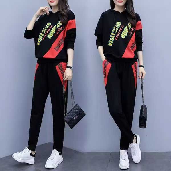 大码女装洋气减龄字母长袖运动卫衣套装春秋季新款胖mm显瘦遮肉两件套190套...