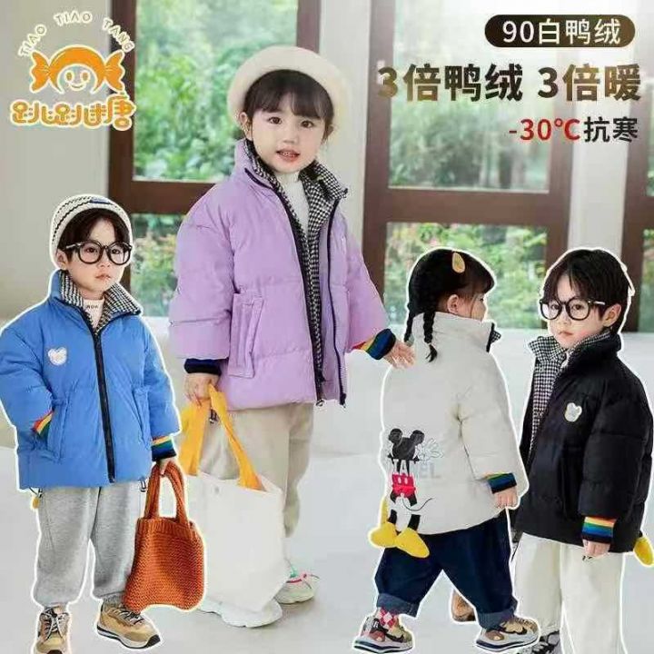 童装羽绒服8000件 码数90到120 整款4个色 前后有图款式新颖 假两...