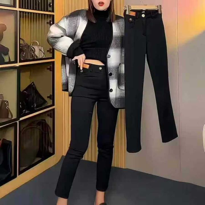 上新全清:9.9一件纯色休闲显瘦高腰弹力加绒烟管长裤,35件左右,码数26-33...