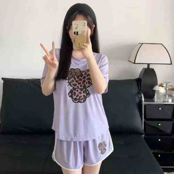 ☕️猫咪带胸垫短袖短裤家居服睡衣套装236套全清9.8元,码数M到XXL,高弹力...