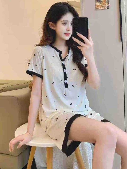 ☕️整款冰丝短袖短裤家居服睡衣套装104套全清9.8元,黑白色,M到XXL码数,...