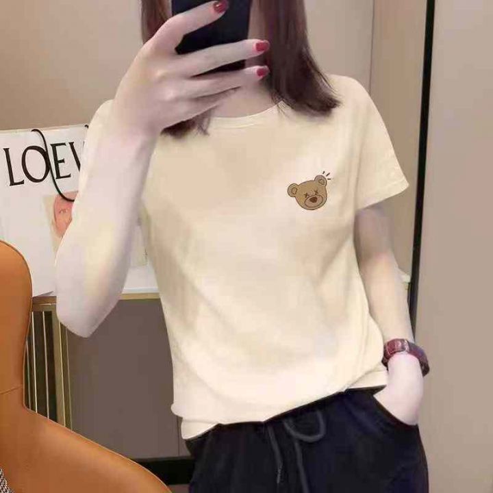 3.9清电商仓回收69件百搭显瘦减龄小熊短袖T恤女,码数S-XL。有后领包边到肩...