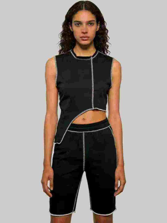 7.5清2076款欧美洋气不规则线条无袖上衣+线条短裤两件套,整款多色,数量:...