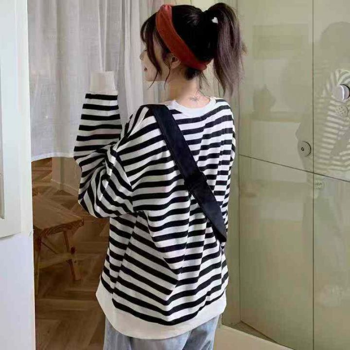 4.8清电商仓回收265件秋冬新款韩版撞色条纹休闲文艺长袖T恤卫衣女,码数s-x...