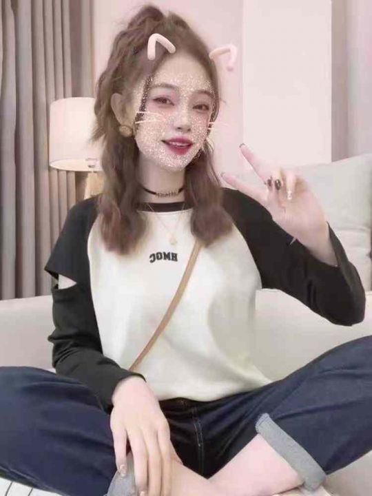 4.9清电商仓回收146件纯棉撞色插肩长袖t恤镂空洋气独特别致上衣,码数2-6码...