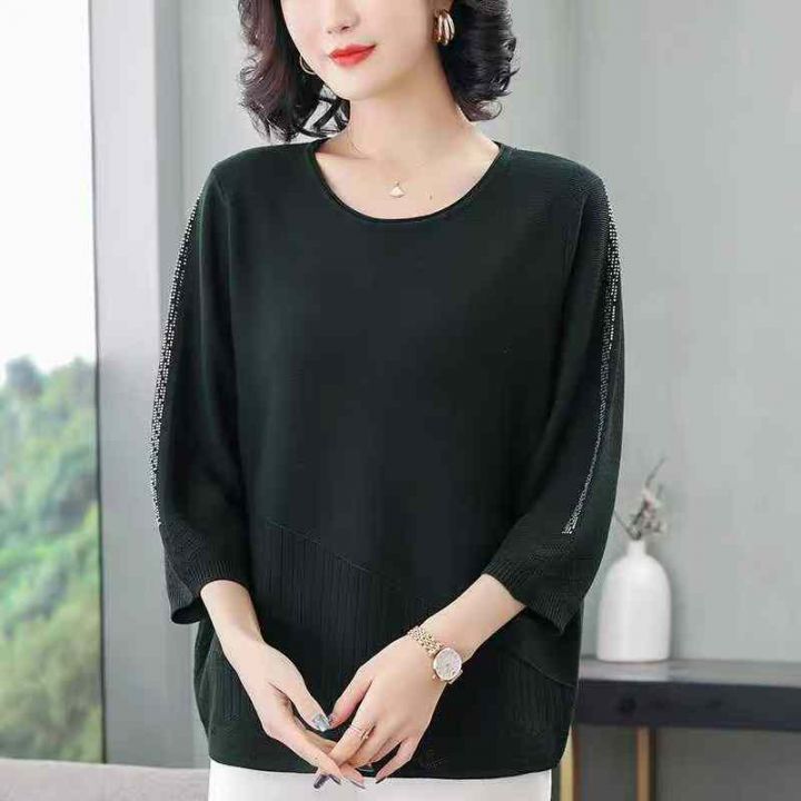 秋季新品轻熟女装大码宽松高压烫钻洋气时尚针织小衫,独立包装,均码面料柔...